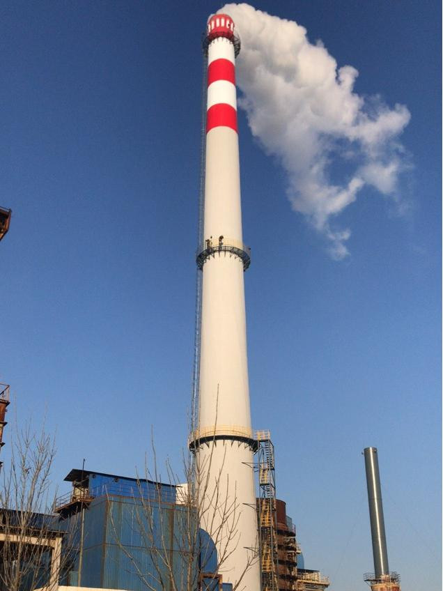 祝贺新建烟囱刷航标竣工内衬防腐层耐 200℃化工烟气无脱落